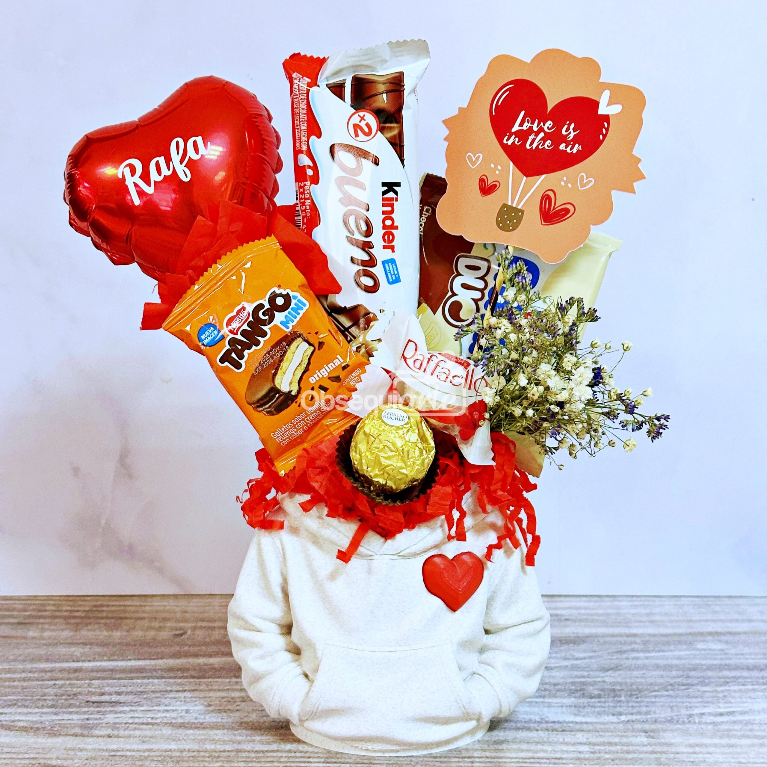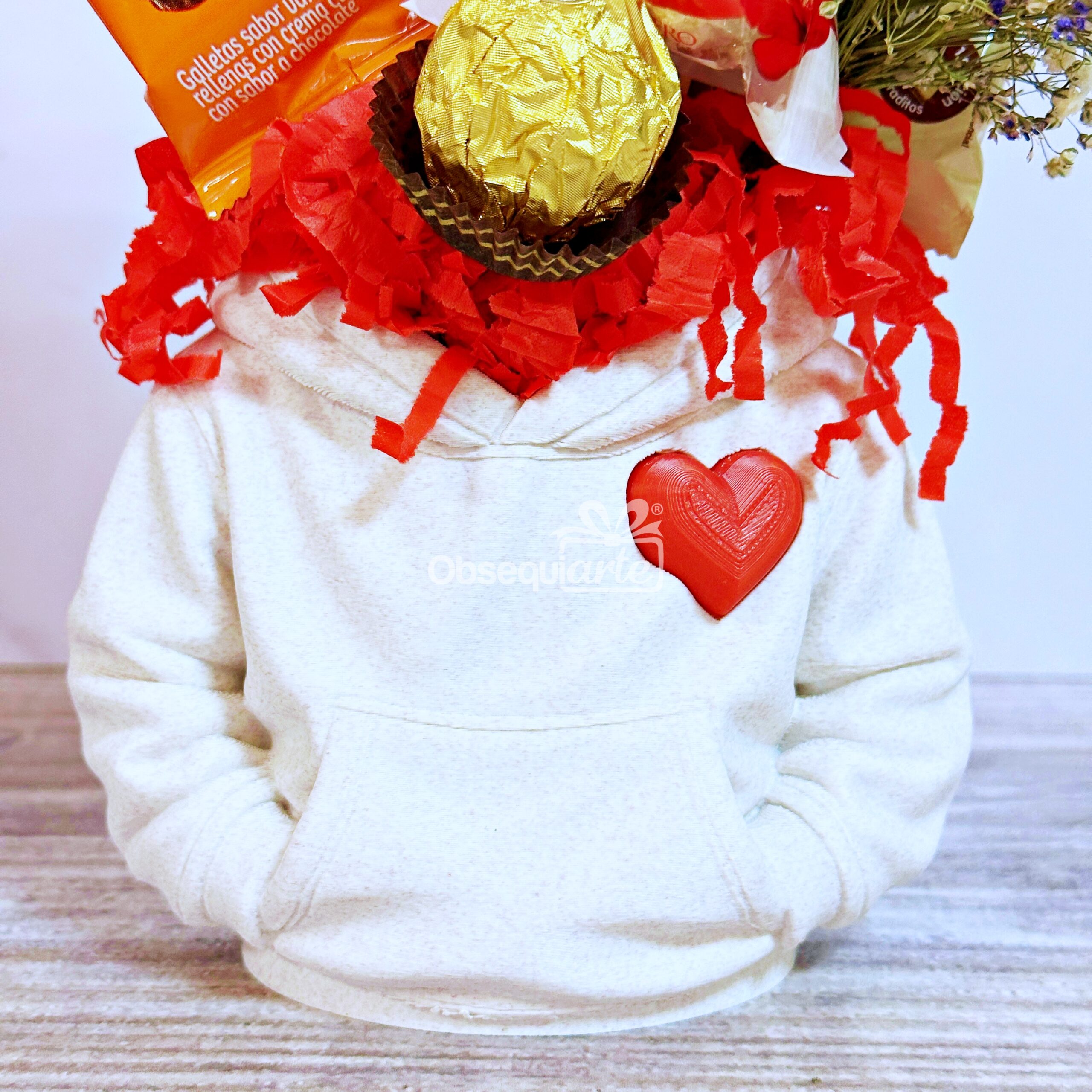 Regalo Good Heart: Un porta objetos de color mármol con un encantador diseño de corazón viene rellena de bombones variados, un pequeño ramo de flores, el regalo perfecto para expresar un joven amor.