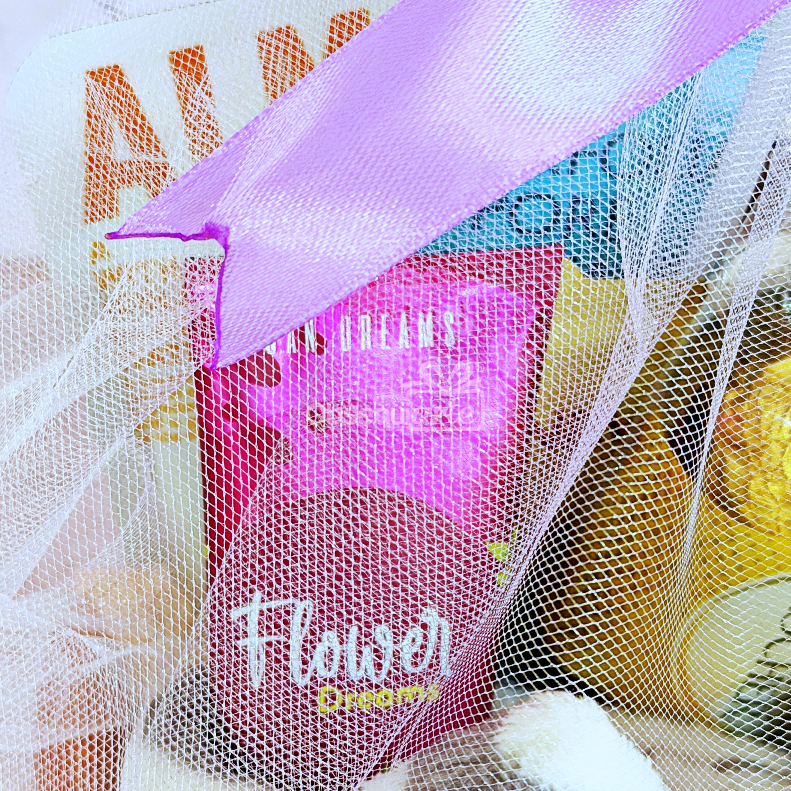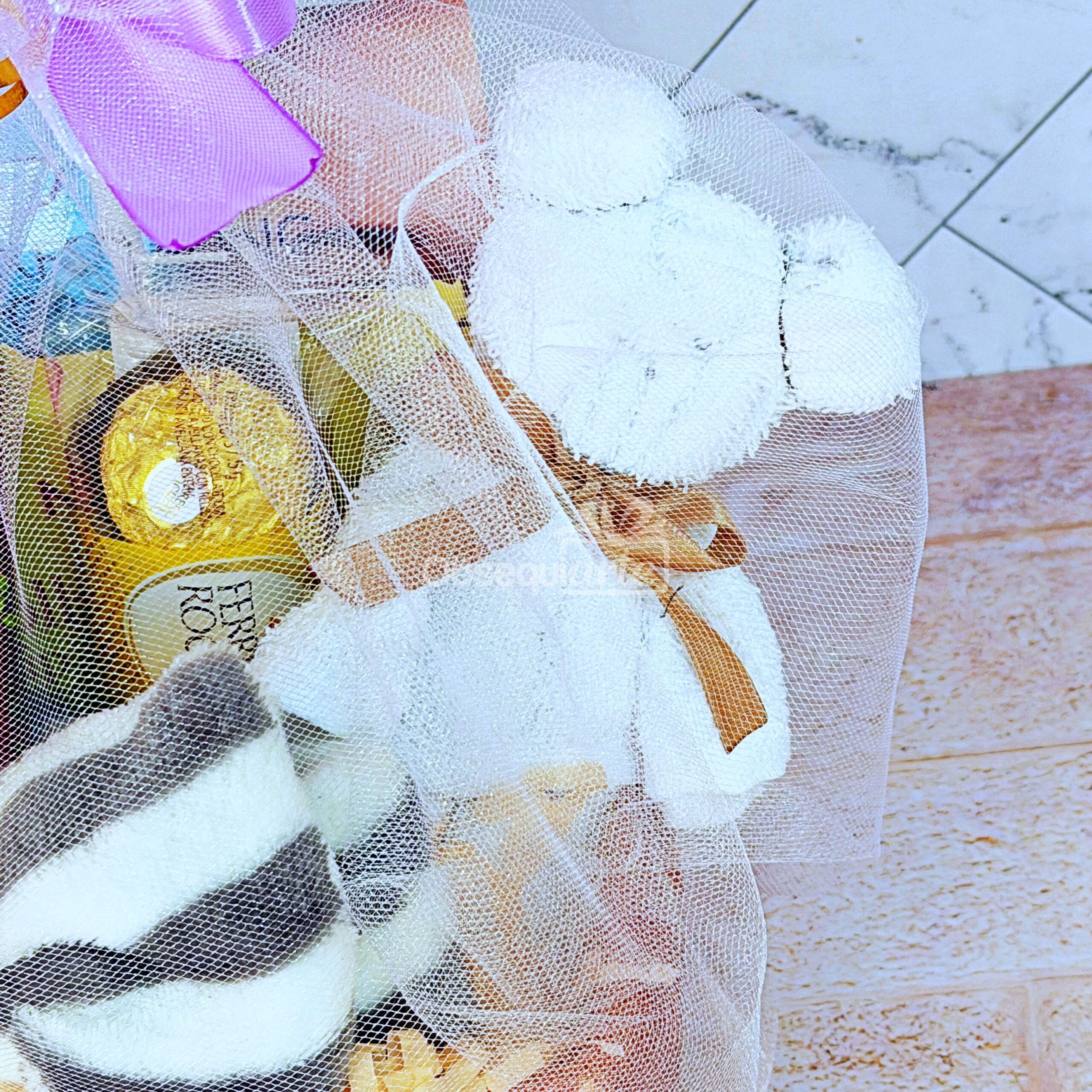 • Envoltura de túl con lazo y decoración